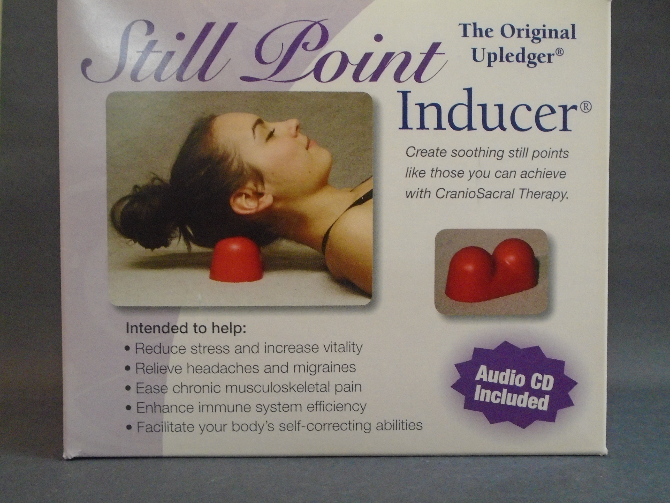 The CranioSacral Still Point Inducer is an effective therapy solution intended to help relieve your stress, tension and pain so you can thoroughly relax. An excellent at home tool to use between treatments. Speak to our physiotherapist or our staff about Craniosacral Therapy for more information about that type of treatment.