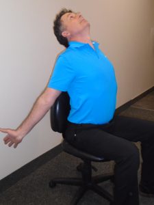 | Working with one or both arms “reaching” toward a mouse or keyboard |